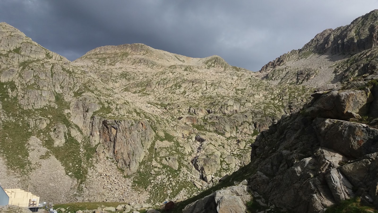 They were extending the refugio, hence the helicopter. We sat for ages watching it work - but to small for the camera. The threatened thunderstorm never came. But look at the clouds - definitely ominous.